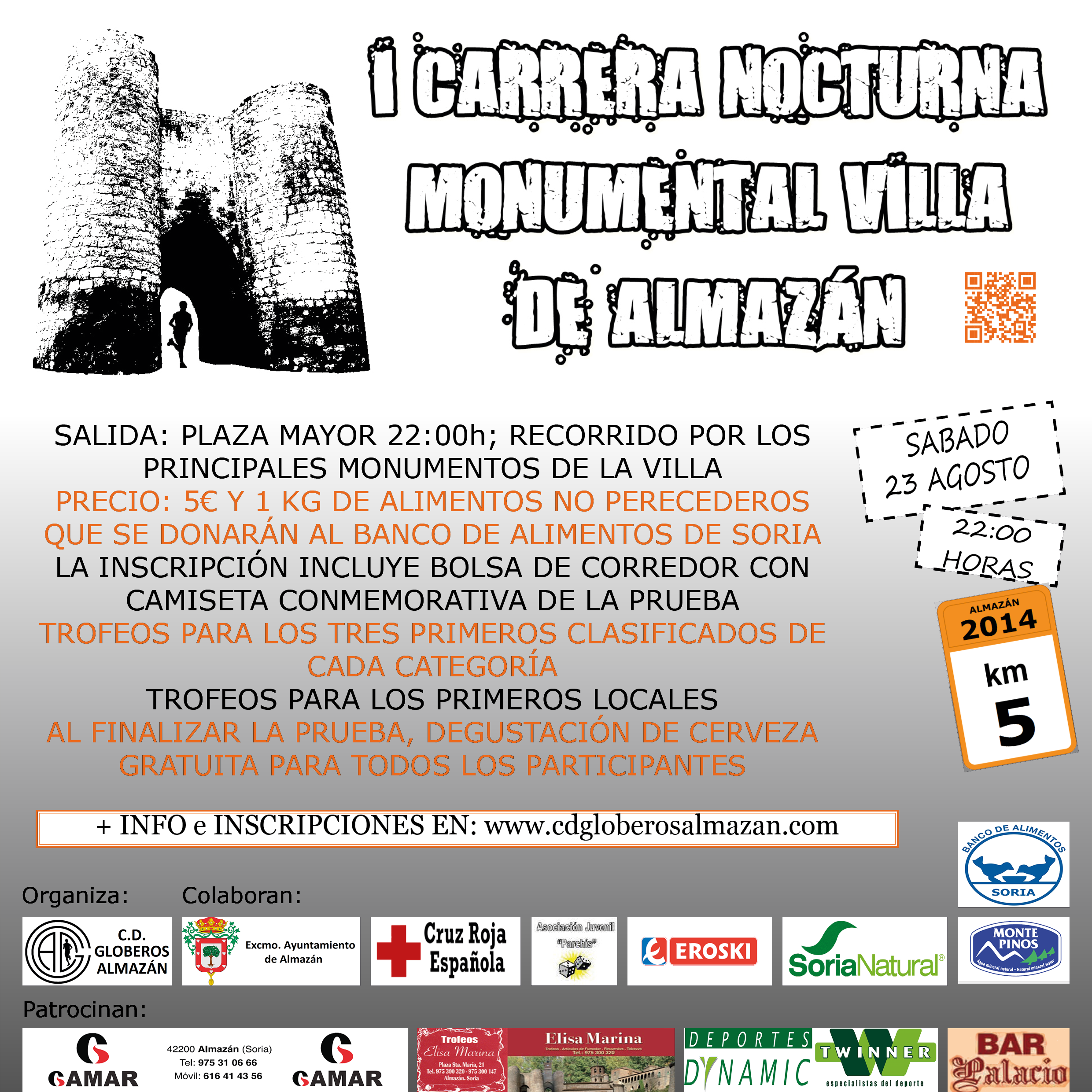 Llega la XI edición de la NOCTURNA MONUMENTAL VILLA DE ALMAZÁN. La carrera más esperada del verano, vuelve con más fuerza que nunca. Es por ello que se tratará de una noche especial, con multitud de sorpresas. ¡Inscríbete ya!